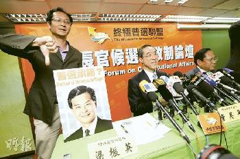 梁振英8日發表修訂政綱,洋洋千字中,關於“政制發展”只有3段約160字,包括2016年取消區議會委任議席、考慮擴大2016年立法會功能界別的選民基礎、落實2017年普選特首的辦法。