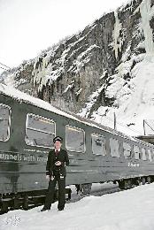 仿古設計的The Flam Railway,穿越結冰的瀑布和雪山,有如北極快車。(圖:香港明報)