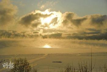 日出時分Tyrifjorden湖面水氣繚繞,透出飄渺的美麗。(圖:香港明報)