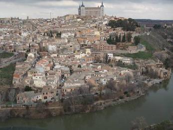 巴士司機左彎右拐後,停在塔古斯河岸的高處,從這裡遠眺托萊多市全景,米黃色房屋層層疊疊,簡直是一幅美麗的圖畫。托萊多是西班牙中世紀時代的首都,古城依山而建,地勢險峻,長長的階梯和狹窄的小巷,是托萊多的特色。城內街道縱橫交錯,只能步行,稍不留意就會迷路。