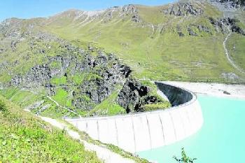 一個多小時後重新上路,只走1小時便到了梅麗水壩。混凝土水壩在一塊突兀的巨石旁劃出一道完美的弧形,擋住流水形成一個美麗的藍綠色水庫。接著我們兵分兩路,一支健兒步行下山,另一支則乘坐巴士,彼此的集合地點就山谷裡的戈里門茲村(海拔1570米)。