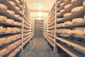 夏天,這牛場每天從68頭母牛身上擠出700公升奶,加工製成15塊約莫30厘米直徑5厘米厚的乳酪。冷房已累積了1200塊不同年齡的乳酪。