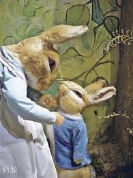 兔媽媽為小兔彼得穿上經典的粉藍外套。(圖:香港明報)