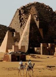 (蘇丹)太陽西下,在沙塵中的金字塔看不到遊客的踪影,然而,考古學家們都說蘇丹北部的努比亞沙漠(Nubian Desert)的神秘是可以媲美古老的埃及的。“金字塔,沙丘及熱情的陽光更增加了這地方的神奇魅力。”巴黎羅浮宮博物館的領導人,吉列梅特安德魯(Guillemette Andreu)說。