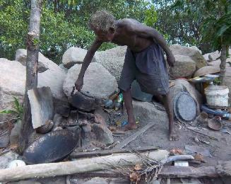拉勒馬里甘自砍樹木,燒柴煮雨水喝。(圖:馬來西亞星洲日報)