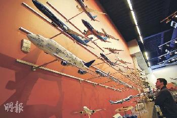 精品店一壁飛機模型,波音的飛機類型一目了然。(圖:香港明報)