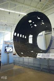 Future of Flight - Aviation Center展出787的部分機身,包括它以碳纖維為主的複合用料。(圖:香港明報)