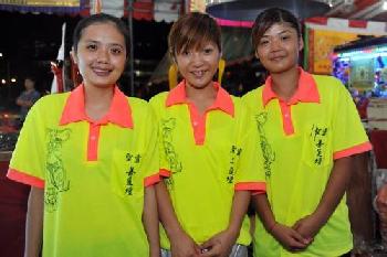 (新加坡)新加坡實龍崗廟宇,週日(4月11日)晚上由3美女姐妹花表演“蒸活人”,吸引近千人圍觀。