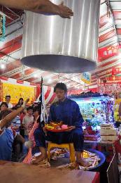 他也透露,週日晚上神壇也會在同一個地方舉行儀式,乩童將輪流走玻璃路,然後再“下油鍋”。