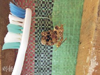 這個微型蜂巢的位置就在我的床上!只要你不犯牠,牠也不會犯你。(圖:香港明報)