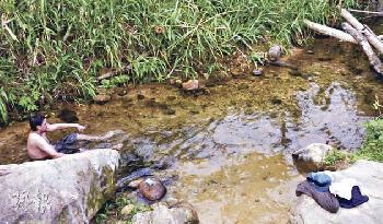 在河裡泡天然大浴池。河裡有很多拇指般大的小魚,在人洗澡時牠們常常吃人的死皮。偶然會有人去捕魚,然後加雞蛋和麵粉炸來吃。(圖:香港明報)