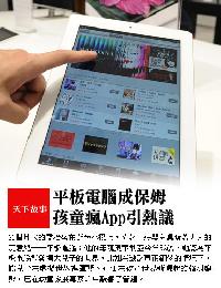 (法國)22個月大的喬治(George)坐在藍色的小櫈子上,靠著一張兒童桌在玩大人的玩意兒──iPad平板電腦;這反映著一個新崛起的強烈趨勢,並引起了兒童發展專家的關注。