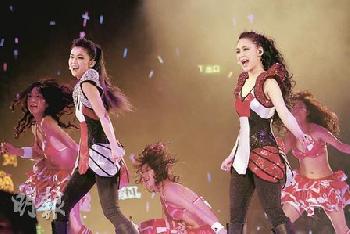 (香港)Twins週五(4月16日)晚上重組於紅館舉行一連三場的《人人彈起2010演唱會》,近兩年她們經歷過不少風波,早前又發生蔡卓妍(阿Sa)被揭與鄭中基秘密結婚及宣佈離婚事件,但她們收拾心情互相支持做好演唱會,其中鍾欣桐(阿嬌)經過連日來地獄式減肥後,週五晚上見成效,穿著低胸短裙秀纖瘦。