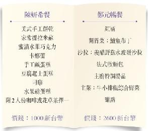 小記最愛的就是妍希餐單入面的甜點,Tiramisu跟蜜漬橘子巧克力的甜度剛剛好,10個讚!不過年輕粉絲去餐廳前,記得帶備足夠金錢,因為餐廳屬中高檔價錢,一個鄭元暢餐價值2600元新台幣,陳妍希餐則是1000元新台幣,主菜平均約1000元新台幣,大家都要好好衡量錢包才好去追星啊!
