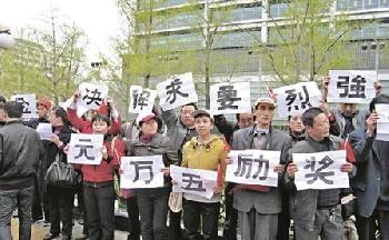 (中國)北京市中心的長安街爆發近年來最大規模民眾聚集抗議事件。來自內地近20個省市2000多名4家國有銀行的前職工,因不滿早年有關銀行改制裁員時對他們的賠償不足,週一(4月19日)上午到全國總工會、中國工商銀行總部外請願,其中有數百人被警員驅逐帶走。據悉,仍有大批前“四行”職員正從各地趕赴北京,準備今日(週二,4月20日)再赴銀監會請願。