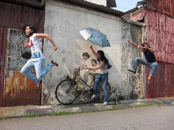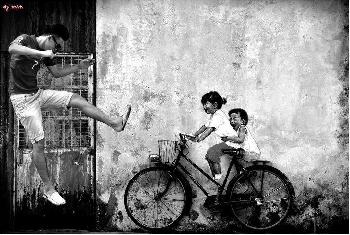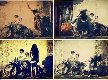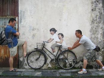 事緣最近來過喬治市的遊客,都會聞風到那邊走一趟,他們不為百年老廟或是會館宗祠,反倒是衝著立陶宛畫家恩尼斯的裝置藝術作品“姐弟共騎”而來。大家到了作品前,紛紛拿出相機拍照留念,再把照片上傳到網上與朋友共享,因此,面子書上滿滿都是這樣的照片。