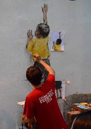 《喬治市魔鏡計劃》第5號作品《爬牆小孩》出現在大銃巷裡,不認真看,還真的以為有個小孩正在牆上攀爬呢!(圖:馬來西亞星洲日報)