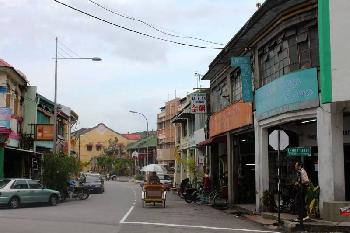 汕頭街街景。右邊首家店鋪是香港鞋店現址,對面一間老屋為其舊店舖。(圖:馬來西亞星洲日報)