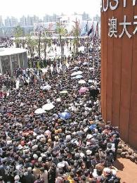 週六世博園有30萬人入場,中國、澳洲、法國等館等繼續迫爆,而預約機又再生故障,德國館一度聲稱排隊時間達到3小時。在浦西園區,中國航空館、船舶館、城市最佳實踐區等吸引力明顯不如浦東的各國家館,但遊客舒服得多,只要排隊5至10分鐘就可入場,吃飯、如廁亦毋須排隊。