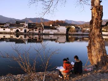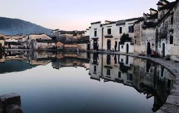 原以為會看到捕抓鏡頭的攝影發燒友湧現,卻只有稀稀疏疏的三幾位藝術院學生,正專情地模擬寫生。這個我眼裡的“山水畫裡的古村落”,就是位於中國黃山西南麓,西南距黟縣城11公里處的宏村。它古稱弘村,是皖南民居村落,也是舉世無雙的地方。