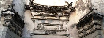 我喜歡古建築的門罩圖案設計,嵌在白牆上,襯以磚雕,古樸中透放靈氣,深邃意境,看得忘我。宏村裡的一幢幢古建築物,彷彿是一頁頁聳立的建築立體古書般,充滿人文景觀之美。