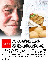 (中國)“淋糖湯圓、艾蒿饃饃、富油包……”這些令不少土生土長的成都人都覺陌生的小吃,86歲的老漢莊良成不僅能做,而且詳知其理。這位成都名小吃文化專家近日將多年來整理的小吃心得送給了一家川菜博物館,包括104種已失傳的成都名小吃製作方式。