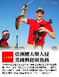 (美國)用弓箭來射擊躍於水面上的魚,其實並沒有你想像中的那麼困難;至少,當你的目標是一隻20磅重的亞洲鯉魚時,而且其數量之多,還會讓你最後射擊到的,不是你最初瞄準的那一隻。“這就是我想看到的!”納登.瓦利克(Nathan Wallick)把船駛到伊利諾伊河密集的亞洲鯉魚群中,指著似在冒泡的河面,大叫道“爆米花!”