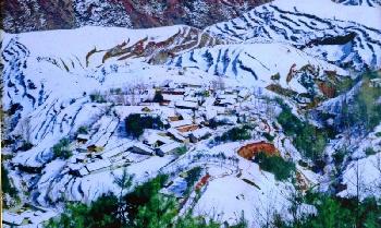 冬天雪景下的東川紅土地和小村莊。(圖:馬來西亞星洲日報)