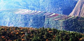 山區梯田注入不同的色彩,形成优美的曲線。(圖:馬來西亞星洲日報)