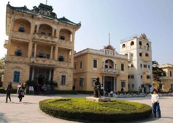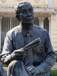 • 開平碉樓塘口“立園”主人謝維立銅雕像,設在入口處。(圖:馬來西亞星洲日報)