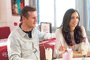 Famke Janssen(右)飾演里Liam Neeson前妻,今集有望重修舊好,她笑言角色性格比上集討好,令她不用再扮惹人討厭的母親和妻子。 (圖:香港明報)