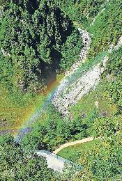 來到黑部水庫,正好遇上放水的季節:每年6月26日至10月15日期間,水庫都會以每秒10至15立方米速度排水,兩條澎湃的水弧,由186米高的水壩飛瀉下來;好天時,還能看到水花折射陽光而成的彩虹。可別以為這是為遊客而設的節目:“我們是應下游民眾的要求放水,以保證他們有足夠水源。”負責人解釋。