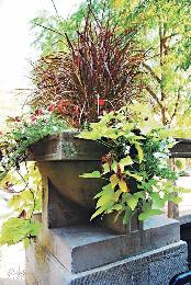 花盆設計其實與名牌(上圖)右下角的印章如出一轍。(圖:香港明報)