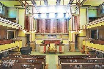 即使今天,身在這百年教堂內,仍絲毫不覺它過時,另一位重量級當代建築大師Mies van der Rohe甚至公開讚美它奠立了現代建築的典範。我們在秋高氣爽的季節中,坐在主堂裡,沐浴在陽光下,欣賞四週恰到好處的空間比例,即使沒有宗教信仰,也被空間深深感染,心情平和而愉悅;建築的神奇力量,或者萊特的功力,已經毋須多作解釋,心領神會就是最好。(香港明報/文、圖:黃潔玲)