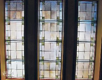 Home and Studio是萊特的私人居所工作間,為所欲為毫無問題。在Oak Park還有另一家必看的萊特作品──Unity Temple,這次屬公共空間,並為客戶服務。本來的Unity Church在1905年遭閃電擊毀,教會找來萊特設計新教堂,1908年落成,他選用了當時新研發的建材石灰,線條是他拿手的簡潔,外形與傳統教堂強調高聳直線、尊崇氣氛截然不同。這座Unity Temple沒有鐘樓,甚至沒有顯而易見的宗教符號,空間感私密親切,線條以橫直線為主,只有吊燈是圓形,天花鋪有彩色玻璃,灑下和美的陽光。