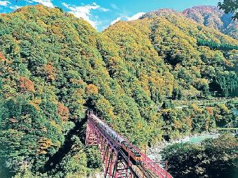 秋天乘黑部峽谷鐵道,可欣賞夾道層林盡染的風景。(圖﹕黑部峽谷鐵道株式會社)