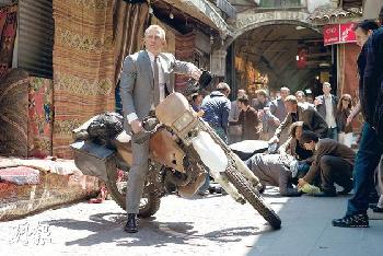 香車與美人一向是《鐵金剛》電影必備的兩大元素,為了加強官能刺激,今集占士邦(James Bond)改乘電單車作戰,果然與時並進。 (圖:香港明報)
