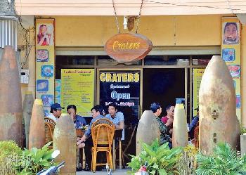 戰爭已過去,地雷仍存在,炸彈殼循環再用,寮國的餐廳,店名“彈坑”(Craters),將炸彈的外殼作為支柱和裝飾。(圖:香港明報)