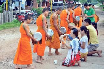 因此,寮國清晨的街道,常見善心人佈施,僧侶在集體化緣,成為寮國的宗教風俗。
