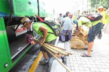 綠色盛會宣布結束獨立廣場活動,來自彭亨州關丹的綠色苦行者紛紛收拾細軟,乘搭長途巴士回家,為下一場活動做好準備。(圖:馬來西亞星洲日報)
