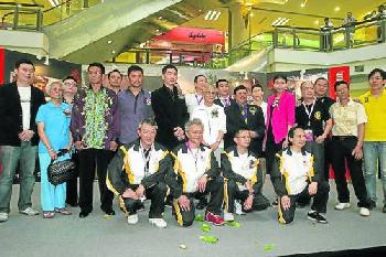 開幕嘉賓與各贊助商代表在開幕儀式後大合照留念,站者左起為贊助商公司人事部經理薛漢鍾、陸慧瓊、沙哈里、樊少皇、陳賢武、葉準、沙比里沙烈與陳嘉桓。(圖:大馬光明日報)