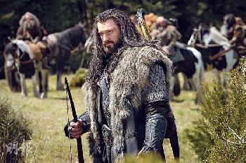 李察阿米蒂奇(Richard Armitage)扮演戰士索林橡木盾,率領哈比人挑戰巨龍。(圖:香港明報)