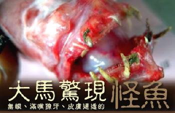 (大馬)柔佛麻坡縣巴力拉惹的漁民於10月9日下午在靠近紅橋岸邊的水域,捕獲一條無眼、滿嘴獠牙、皮膚通透,死後全身透紅的怪魚。當地許多資深的漁民面對這條前所未見,叫不出名字的怪魚,不禁嘖嘖稱奇。20歲的漁夫沙利查透露,當天下午6時許,他與同伴在紅橋沿岸捕魚,就在拉網上船時,他發現了這條長得非常獨特的怪魚。就在沙利查的手靠近那條怪魚時,它突然挺直身體,張開滿口的獠牙,準備攻擊正在拉漁網的沙利查。