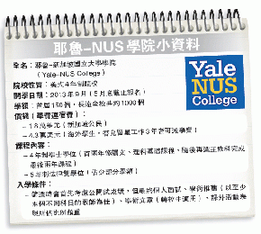 耶魯-NUS學院今年9月起開始招生,至2013年9月開學時首屆會有150個學額,至今吸引全球2600名學生報名,未來會發展至全校共1000名本科生。