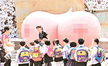 高5公尺、長5公尺的佛山巨乳是行為藝術家舒勇為諷刺當前豐胸熱的雕塑作品,在中國引起爭議。(圖:大馬中國報)