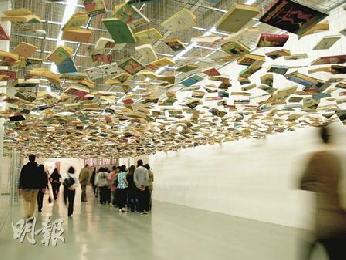 Istanbul Modern在地下層展出Richard Wentworth的False Ceiling。Richard Wentworth以代表東西文化的多本書本製作假天花。書本所代表的知識,卻因為高度令觀者只可遠觀,書本有時候是知識,也有許多時候是權力與謊言的化身。(圖:香港明報)