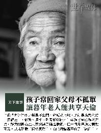 最新調查顯示:中國內地農村“空巢老人”普遍存在“四難”——生活難、看病難、辦事難、得到情感慰藉難。其中,老年人勞動自養、夫婦互相扶養和子女贍養是傳統家庭養老的三大支柱,由於子女在家庭生活中的“缺位”,喪失了支撐家庭養老的穩定結構,從而影響農村老年人的生活質量。