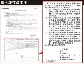 面對員工自殺成風,富士康的應對方法卻是要求員工簽署承諾書,放棄追究權利。長期研究中國民工問題的香港理工大學應用社會科學系副教授潘毅指出,此做法似是想恐嚇員工多於想解決問題,“所有條款都是為了自保,不是幫員工”,她又質疑,即使員工簽字,富士康亦未必有權強行把員工送院治療。