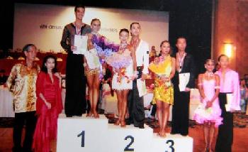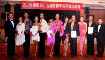 葉燕珍(左2)和拍檔楊俊偉(左3)參加2008年桃園聯合杯國際標準舞亞洲公開賽。(圖:大馬星洲日報)