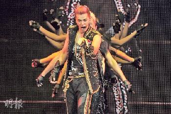 (香港)羅志祥(小豬)1月18日晚在紅館舉行首場《舞極限世界巡迴演唱會——香港》,小豬媽一早安坐觀眾席為兒子打氣。小豬穿上閃亮亮的銀色衣褲由台底彈出,與20多名舞蹈員勁歌熱舞,不乏與女舞蹈員摸腰及掃腿等親密動作,更有舞蹈員伸手放在小豬下身前方位置,意識大膽,看到台下女粉絲嘩聲四起!